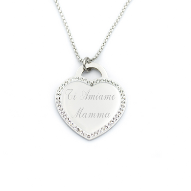 Collana Acciaio con Fotoincisione Medaglietta Cuore Brillantini